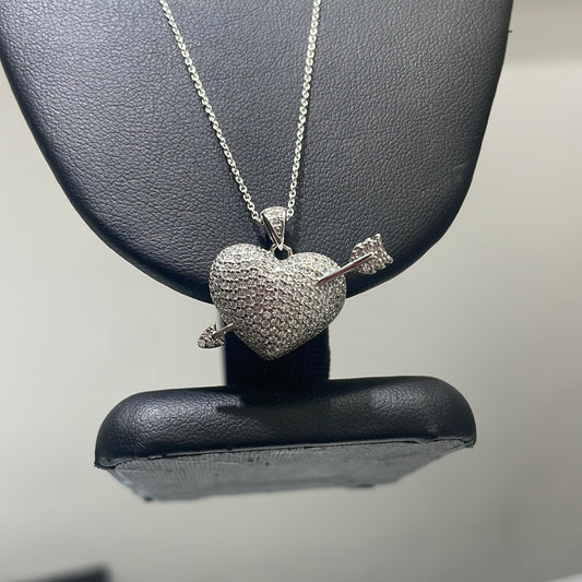 925 FINE ITALIAN SILVER ROLO CHAIN 1MM 16INCH + 925 FINE SILVER CRYSTAL PENDANT