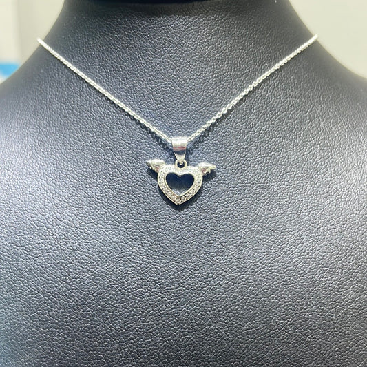 925 FINE ITALIAN SILVER ROLO CHAIN 1MM 16INCH + 925 FINE SILVER CRYSTAL PENDANT 💎Fine precious metals solid 925 silver